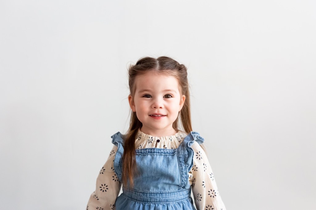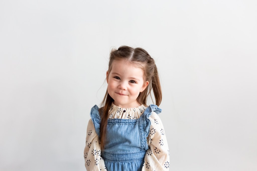 Always has her hair in her face and is constantly wiping it out of her eyes. If she allows you to put it up, it MUST be in a ponytail and certainly NOT a bun