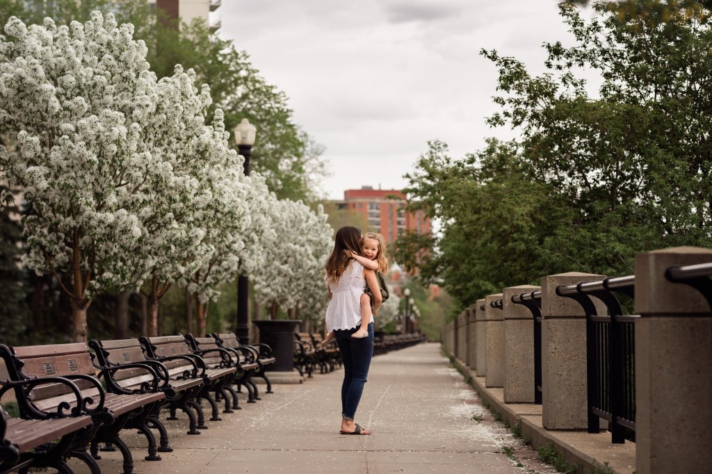 This year the girls and I went on a “tour de blossom” with my good friend Cassandra and her kiddos Kaia and Koa. We started at Irene Parlby Park and made our way to the beautiful Victoria Promenade.