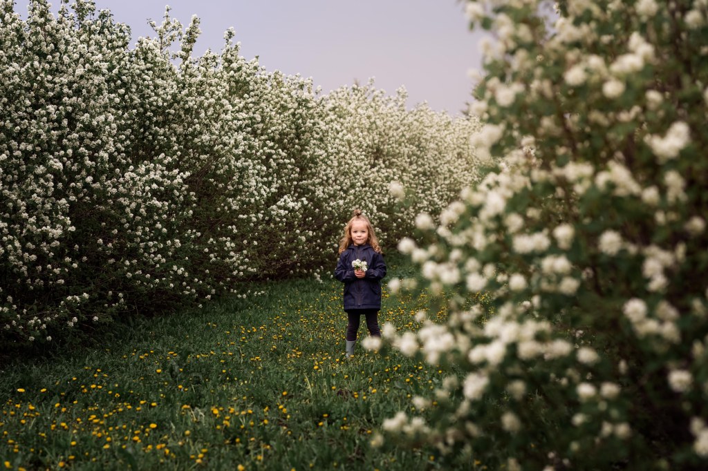 We also caught the Saskatoon bushes flowering at my parents’ place. The flowers only last a few days so we went out and took pictures even though it was lightly drizzling.